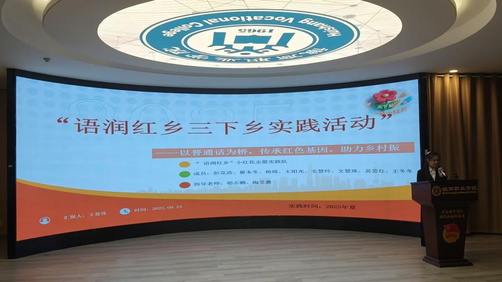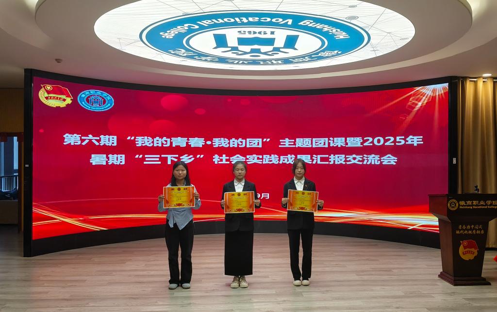 为表彰先进、树立典型,活动现场对2025年暑期“三下乡”社会实践活动中涌现出的优秀团队、优秀个人及优秀指导教师进行了表彰。“宁聚青力”——乡村振兴先锋实践队荣获优秀团队一等奖,“小红花”志愿实践队荣获优秀团队二等奖,“语翼清锋”实践队荣获优秀团队三等奖;23206班邱昀同学荣获优秀个人一等奖,24直播电商1班王珂同学荣获优秀个人二等奖,24大数据班杨琦同学荣获优秀个人三等奖;胡志鹏、袁琳荣获优秀指导教师称号。