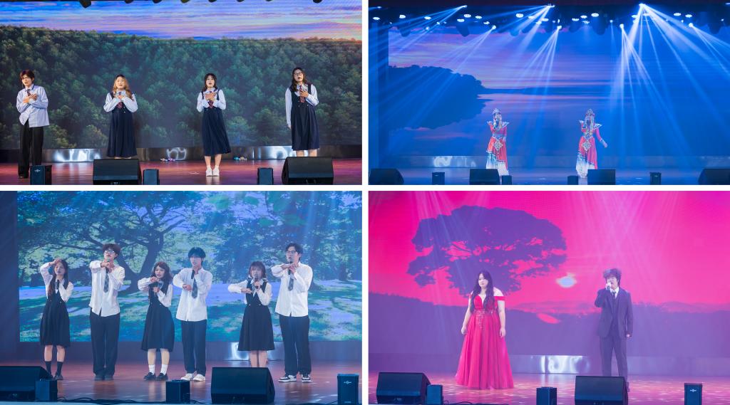 第一篇章“六秩重德 薪火绵延” 中,朗诵《母校六十载的辉煌》以 “立德铸魂” 串联办学关键节点,尽显徽院人德育为先的精神底色;歌伴舞《如愿》用悠扬旋律与优美舞姿,诠释师生对母校以德育人的美好期许与传承信念。