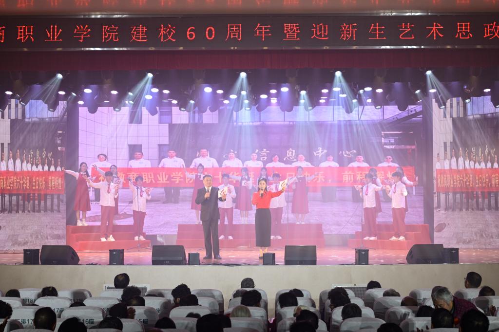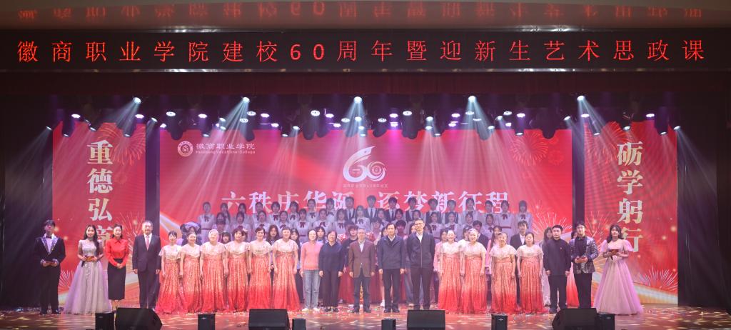 11月15日晚,徽商职业学院“六秩庆华诞・逐梦新征程”建校60周年暨迎新生艺术思政课在槽郢校区大礼堂顺利举办。企业代表、校友代表、全体校领导及师生代表等500余人欢聚一堂,共忆办学初心,共庆六十华诞,共绘发展蓝图。